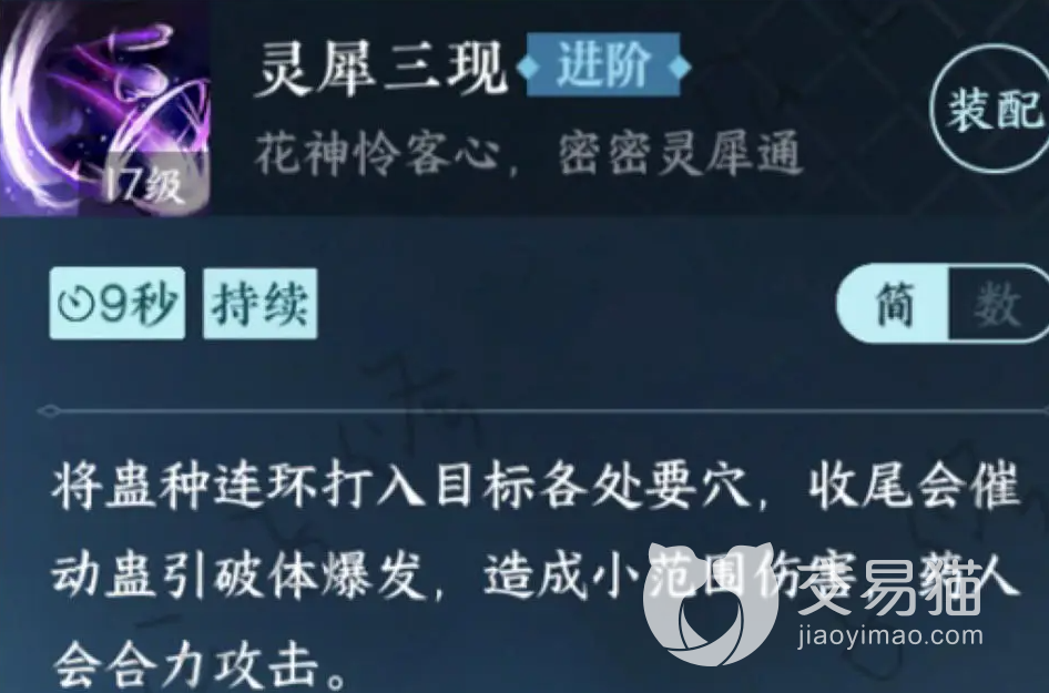 技能方面灵犀、聚蛊、刺魂击、破梦,按照这个优先级来进阶,尤其是灵犀各种搭配的里都有它的存在。然后是单个技能的一些大致分析,可用于技能选择参考。