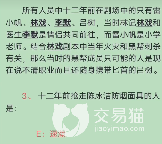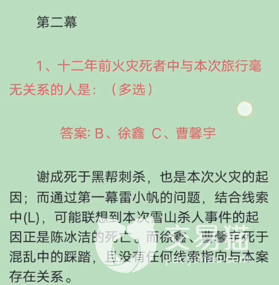 以上这些便是百变大侦探里关于余烬这个剧本谜题的解答。这个剧本一直是围绕十二年的火灾而进行的一场复仇。玩家需要在现在和过去之间进行切换,这样才能得到收集到全部线索,从而得出真相。