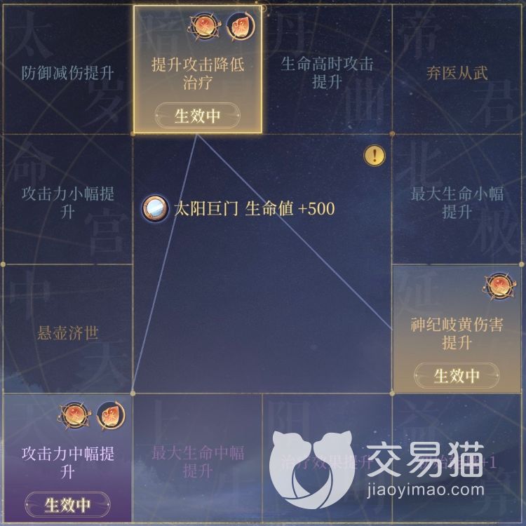 先说华佗,通过对命盘的的调整华佗既可以走纯治疗的路线,也可以走纯粹的输出路线,甚至还可以凭借“神纪岐黄伤害提升”这个核心命盘来作为杨修的辅助,最大化杨修的技能伤害,群疗的强度有T1,群攻能到EX+,而辅助路线则是EX。