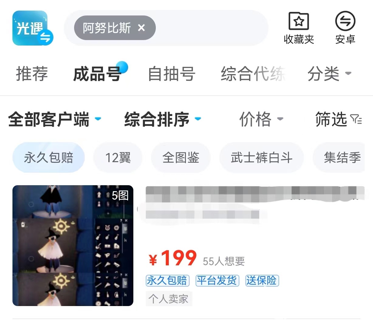 通常能够提供估价的软件,一般也就是游戏账号交易平台,估价属于平台附带的功能,可以给卖号的玩家提供更多的便利。拥有比较准确估价功能的平台是交易猫,这个软件也是比较有知名度的,大家下载后在游戏分类中找到光遇的板块,并在筛选框中输入“阿努比斯”关键词,剩下的卖家账号都是带有这个面具的,然后就可以通过账号进行对比得出价格,通常情况下一共账号在300-500,因为能有阿努比斯面具的话账号练度肯定不低,还会有其他很多资源在账号内。