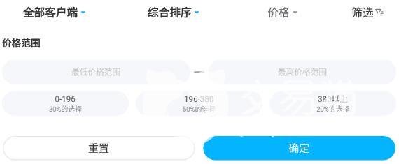 2.不同的用户,在购买账号时的预算是不一样的,为了方便大家查阅,系统设定了一个检索功能,划定了几个价格区间,买主可以选择符合自己要求的区间,并进行搜索,之后就能获取许多相关的账号。