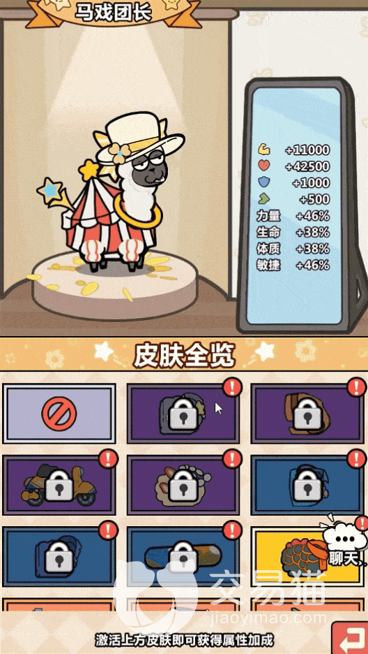 2、皮肤:皮肤系统除了可以改变角色的外部样貌外,在收集后还能够为角色提供可以累加的属性。