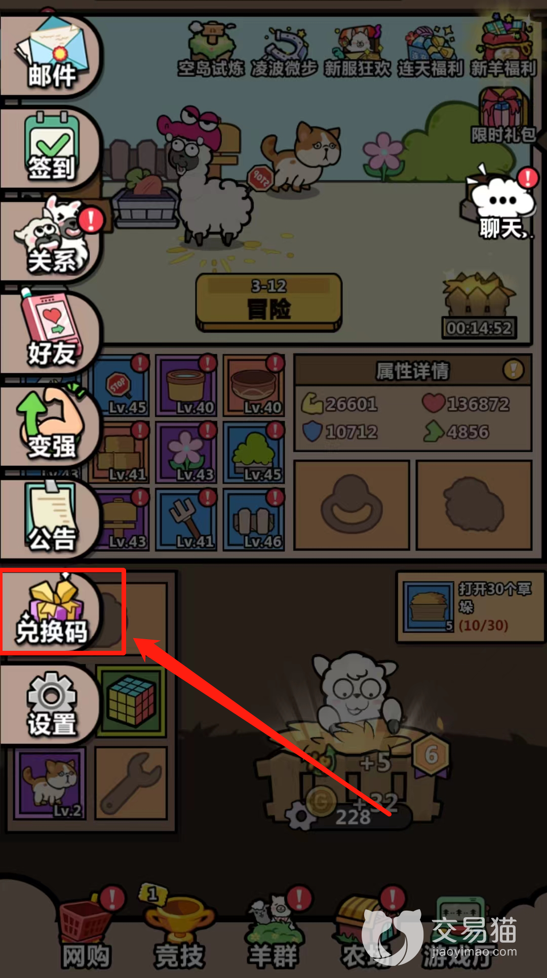 3、如何使用兑换码:首先进入到游戏的主页面位置,点击左上角位置的三个横杆打开菜单栏,在里面找到并点击“兑换码”即可开启兑换界面。在该界面输入刚才小编准备好的兑换码,在确认之后就可以兑换到奖励了。