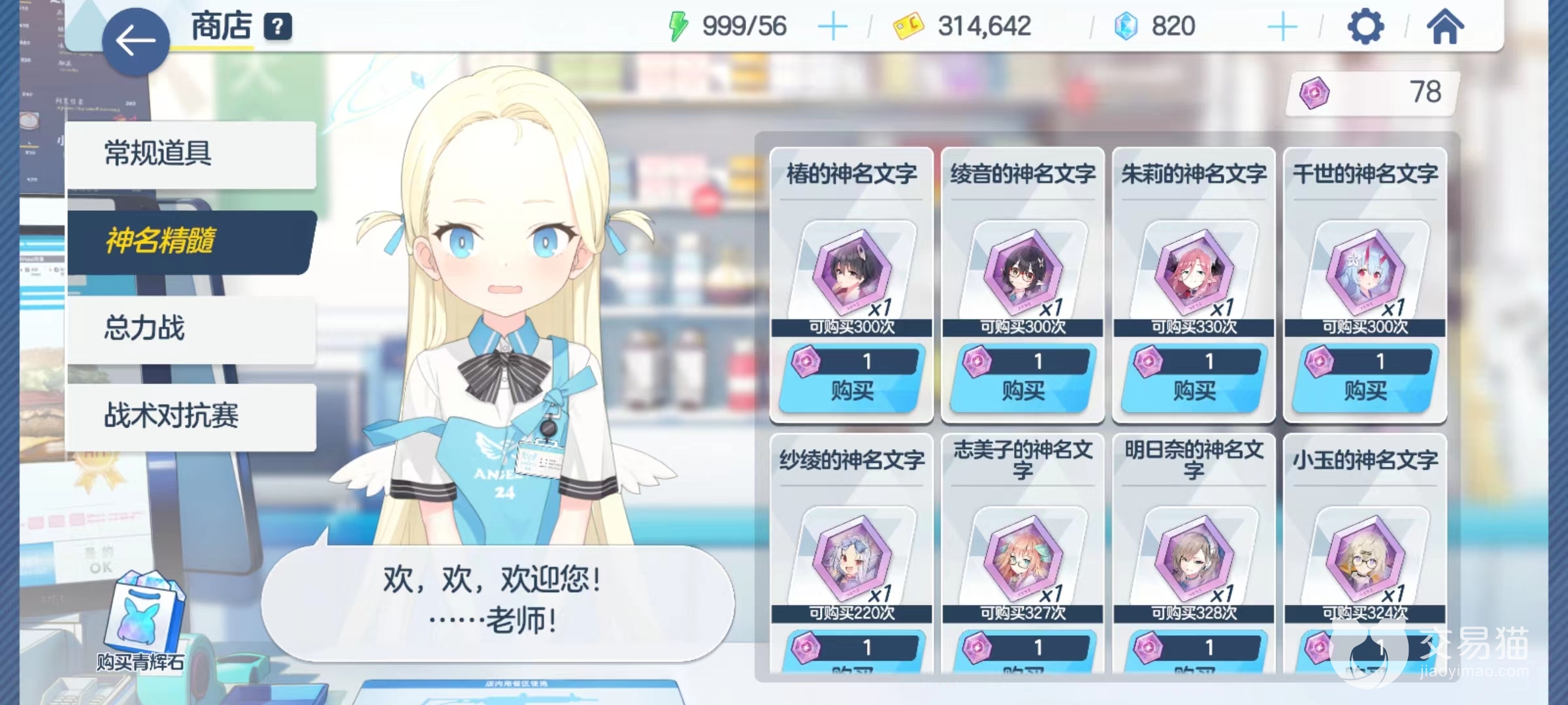 要想获得提升星级所需要的资源。是在神名商店中,这里面有很多不同高星角色的神名文字,例如枫香、花江、歌原,鹤城等都在这里,可以直接购买到。要消耗的就是神名精髓,通过抽取可以大量获得。对玩家来说,目前最关键任务并不是去搭配一套阵容,而是将手中拥有高星角色尽量培养到五星,这样个体实力可以掩盖阵容上不足,后期资源丰富了再去搭配,这种效果最好。