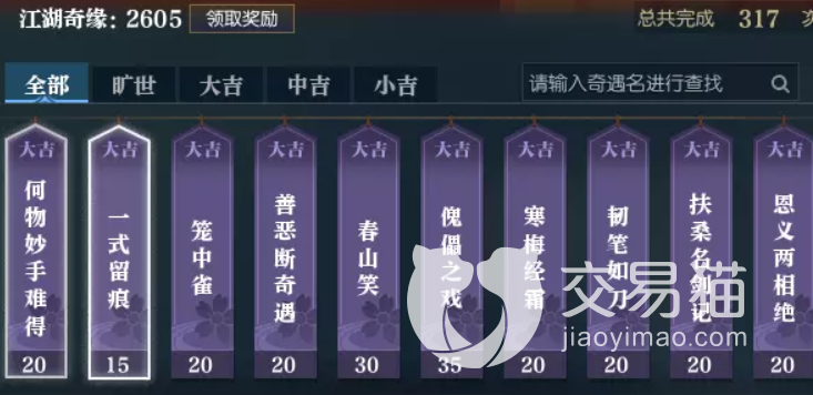 第二个一式留痕奇遇。该奇遇在游戏中想要完成没有什么特定的坐标,只需要玩家在三清山中即可。触发该奇遇NPC是一个神秘人,他会自己找上门来。不过为了方便玩家更快速的通关,小编建议大家先打坐把自己的五感提升到一个最高的强度和范围,之后再选择上山晃悠。战胜敌人之后获得技能杀虎一式。
