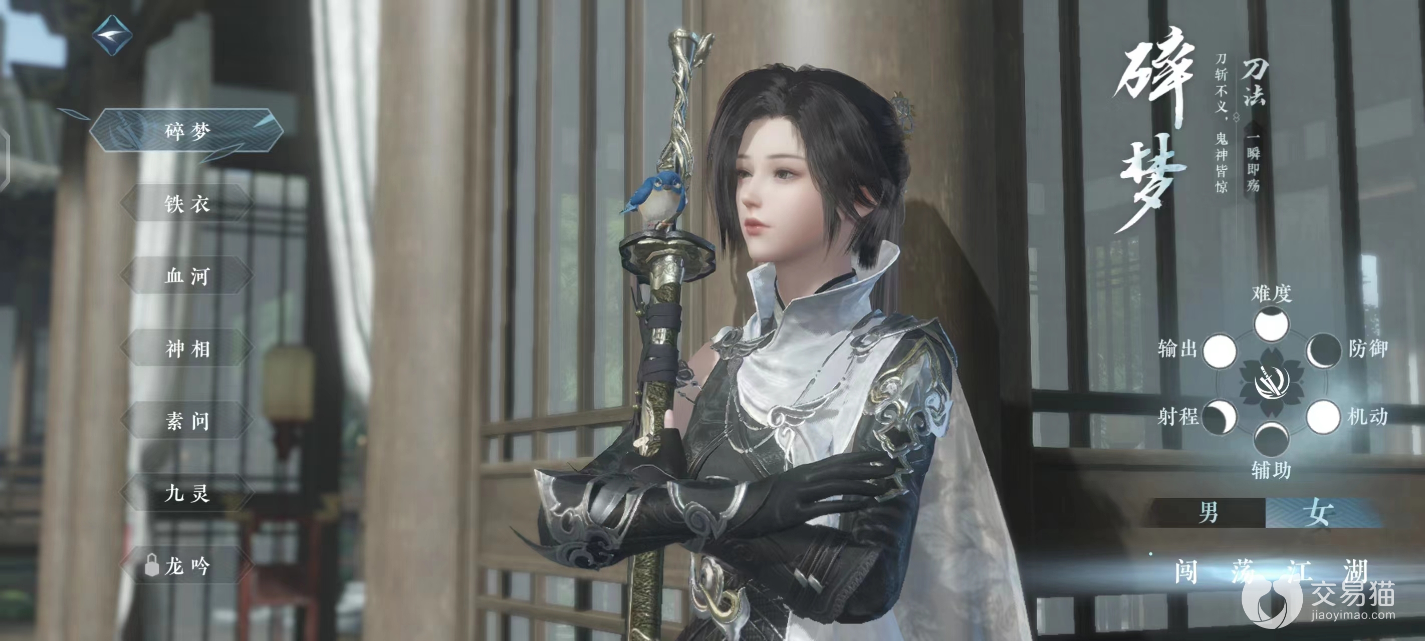 碎梦:该职业主要使用的是刀法,定位上是一个高机动高爆发的近战外功角色,他的操作难度稍高,使用技能时屏幕上还会出现不同的字样,当使用时正好触发“极”字时还可造成额外伤害,因此在出招时机上有着一定要求,不过它本身对于操作的容错率也是很高的,因为只需不断连击就可触发极意状态,后续再施放技能时无论是数值还是效果都能得到强化。