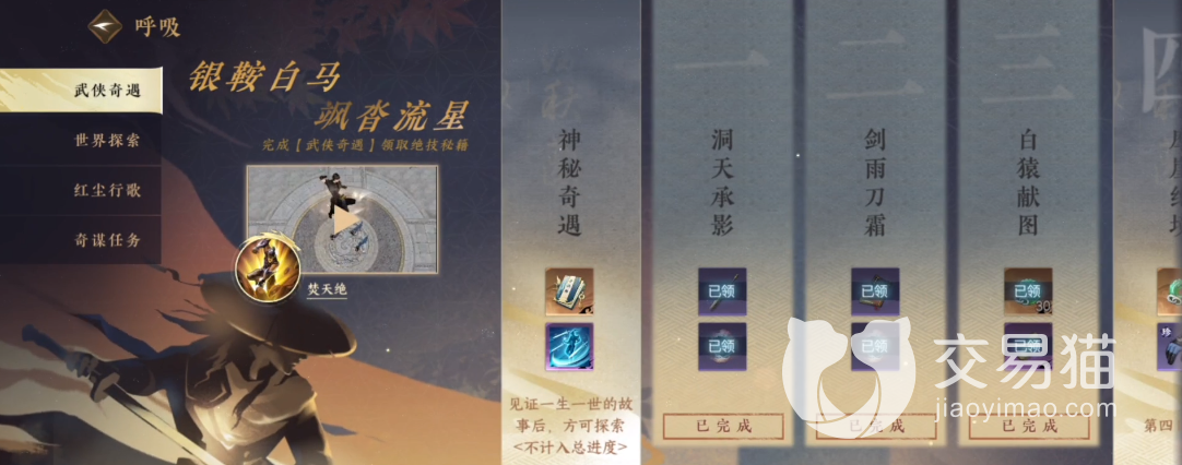 霄云液与雁门关的宝箱的奇遇分别需要玩家前往变晶的水井中和雁门关山洞中完成,玩家在跳入水井之后会遇到受伤的霄云液,击杀掉霄云液就可以得到一件装备,之后在雁门关山洞时需要运用吸星揽月技能移动方块破解机关击败5个BOSS获取最后的宝箱装备。