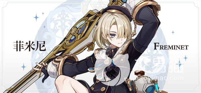 菲米尼在游戏当中的设定是作为林尼的弟弟而出现的,不出意外的话应该是一个四星的角色,冰元素就是菲米尼的属性了,菲米尼的命之座是机巧座,手中的那把大剑就是菲米尼的武器了。