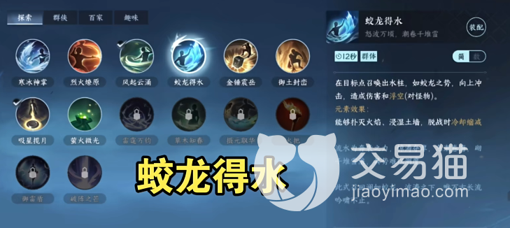 该技能目前并不支持升级,不过玩家可以通过特定的行为来获得新的探索技能,其中最帅的“蛟龙得水”就是通过击打水面溅起水花后获得,它施放的时候会召唤出几条水柱,除了特效足够酷炫外,还能对附近的敌人造成伤害,对怪物更是能施加浮空控制!