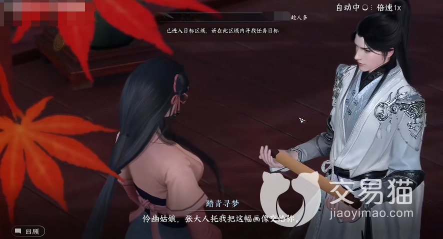此外,这个酒楼和三合楼也有着类似的任务可以触发,你来到外围的走廊内可以找到一个名为“怜幽”的姑娘,通过把张大人的画像交给她可以触发后续的任务剧情,剧情播放完毕之后,就可以完成踏破铁鞋的任务。