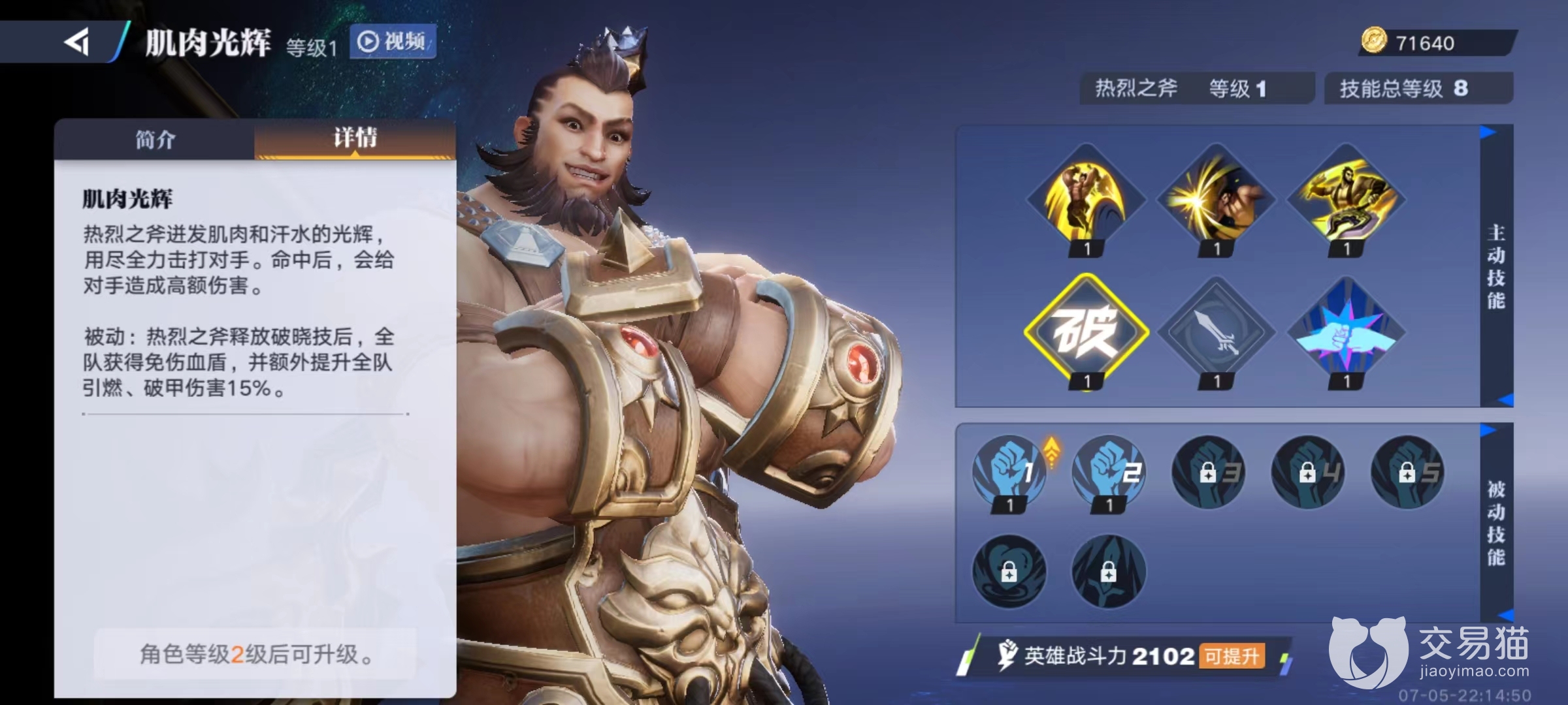 所以这款游戏里程咬金同样在续航方面非常出色,而且较为坚硬,就是因为该技能效果原因。第3个肌肉回旋,将手中双斧挥动起来攻击对手,对附近敌人造成伤害,如果在空中释放则既能拥有升空能力,用于清理小怪或者是利用升空来达到更好对战目的,都是极其好用的。破晓技能肌肉光辉,命中敌人时造成高额伤害,另外还有被动效果就是当释放该技能后,全队都将获得免伤血盾效果,同时能提高引燃和破甲伤害。
