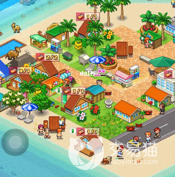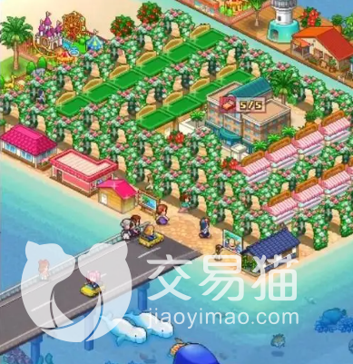 第三张图则是一个规划的较为合理的沙滩区,与草地不同的是,因为沙滩的特殊性,所以沙滩上即使没有路,游客们也是可以前往店铺进行消费的,而椰子树靠近数遍的话不仅可以改善水质,椰子树也有几率繁衍出更多的种字,并与沙滩椅行程联动,增加收益。