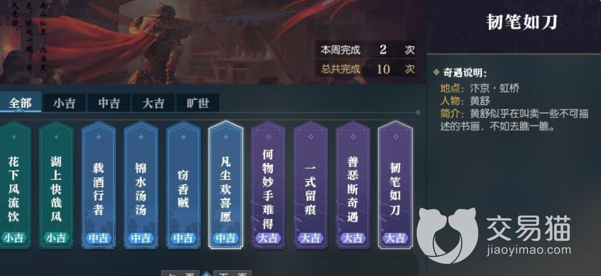 太平笔的获取方式需要完成奇遇任务韧笔如刀,这个任务的触发npc黄舒,该人物位于汴京虹桥,接取任务以后npc为给玩家讲解这个笔的作用,之后就是各种提升去完成流程,整个流程没有复杂的解密,就不多作解释了。