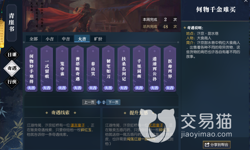 一部分特殊宝箱是锁住的,需要使用到特定钥匙才能打开,而钥匙的获取基本上是需要完成藏宝任务的,任务会提供一个藏宝图,需要玩家跟着地图走才能寻找到钥匙奖励的,而这类藏宝任务的解锁就是需要到偏僻的山脉才能解锁。
