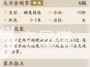 首先是通用技能大力金刚掌可以对前方造成连续三次的额外攻击,失去特效换来的是超短的抬手后摇以及施法前摇,玩家们可以在释放大技能的间隔打出这个技能,然后流畅的衔接之后的金刚伏魔图,造成范围定身。