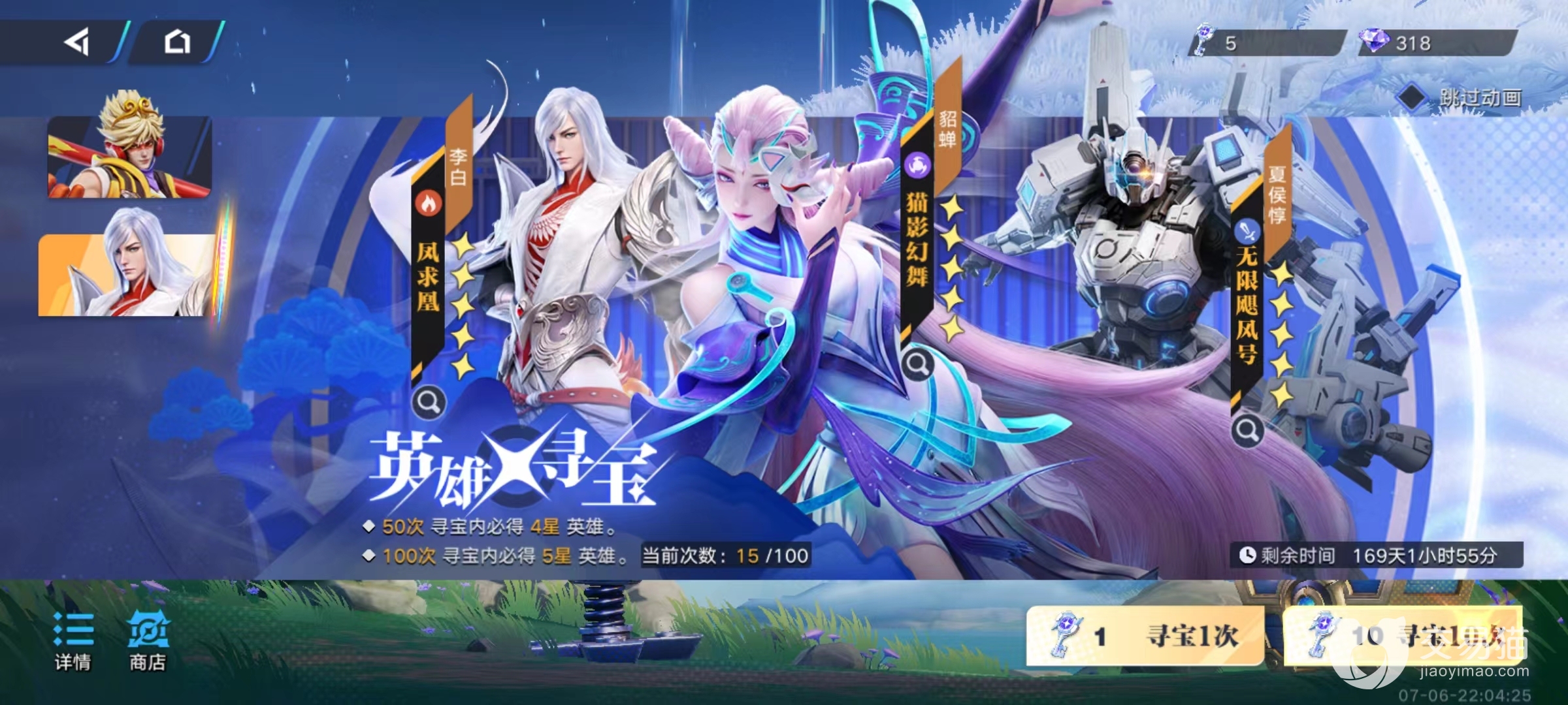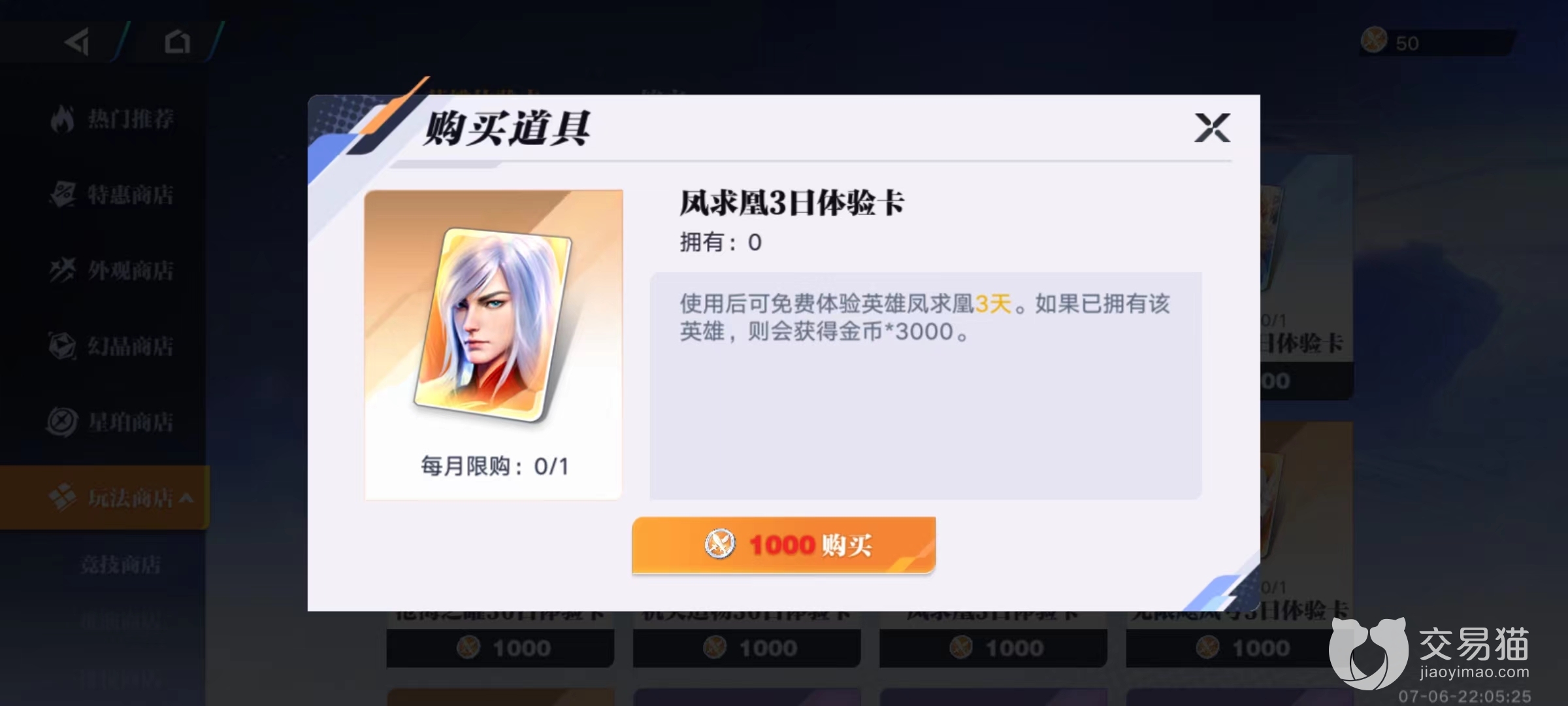 但是几率毕竟是几率,目前还存在着保底机制,那就是在池子中抽取50次以内,必定会获得一名四星英雄,抽取100次必定会得到一名五星英雄。当然会在三个间随机出现一个,有了这样的保底,自然就不用担心脸太黑问题。除了寻宝之外还有一项途径,虽然不是获得英雄,但是能够得到体验卡。那就是去竞技商店中兑换,如果能累积1000枚竞技币就可以获得一张凤求凰三日体验卡,体验卡能够在三天之内自由使用,可以充分体验到该英雄强势之处,再决定是否要继续抽取。