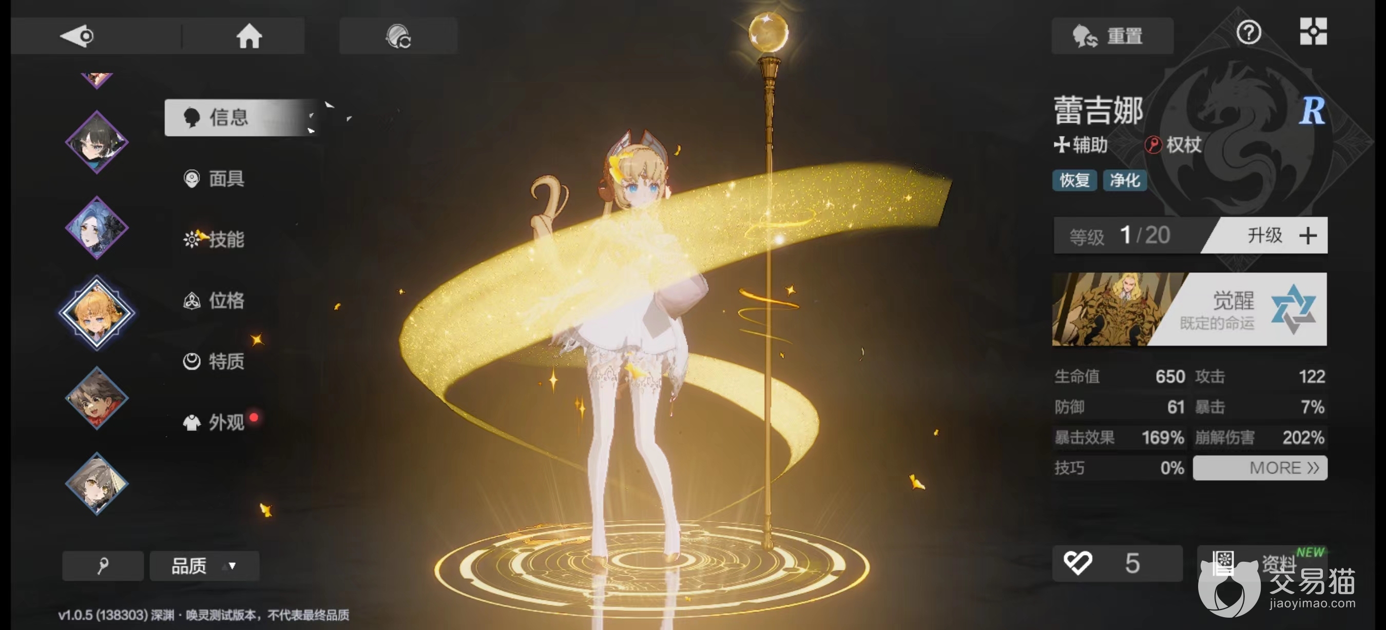 前期可以适当培养雷吉娜,可以打权杖类型的崩解效果,同时还有奶量,不过由于角色是R卡强度非常受限,因此后期都会成为被替换的角色。