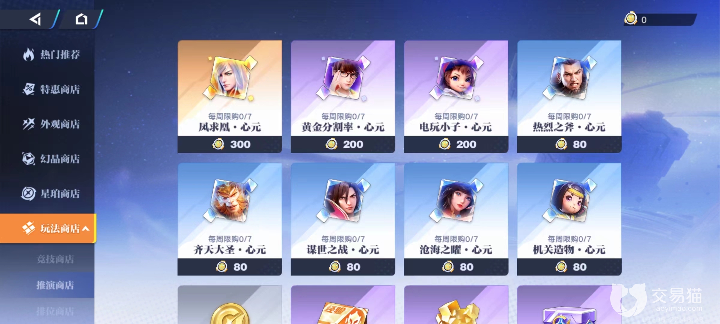 接下来就需要通过商店购买功能来实现精准培养,当来到玩法商店里的推演商店时,就可以看到有不同角色星元。包括目前非常火爆的凤求凰,以及新手玩家常用的谋士之战,机关造物,热烈之斧等,在这里都能够购买到。所需要消耗的就是推演币,只要参加推演星战活动就能获得。