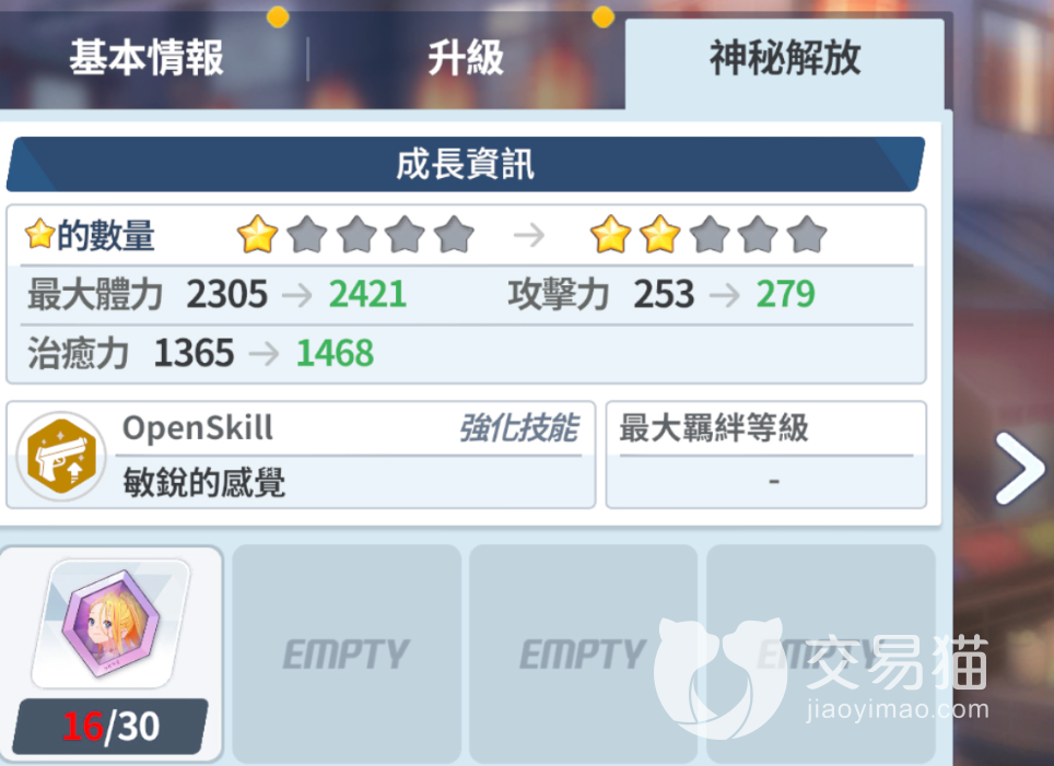 最后是升星之后的技能,当角色升到2星的时候提高自己的暴击属性,升到3星的时候提高攻击速度,比较标准的输出技能模板。