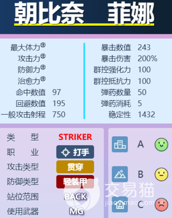 该角色EX技能可以提高自己一定比例的攻击力,同时更改自己的攻击模式,可以向敌方单个目标造成三段的连续高额射击,这个射击伤害是比较高,如果在施法期间击杀单位,可以将伤害转移到另一名单位,输出能力不错。