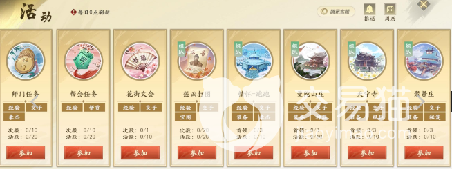 最后是师门活动和帮派挑战活动,这两个活动是日刷新活动,玩家每天都需要做,做法也很简单大家只需要找一个队伍去挂机就行了,一般来说在活动刷新之后招募板上是会有很多挂机队伍的,随便进一个就行,之后完成这两个任务后必做活动也就全部完成了,之后其他的活动做不做就看大家的需求了。