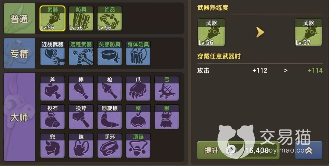 2、普通的3种是需要随着等级一起点满的。普通熟练度等级会影响专精熟练等级,而专精熟练度等级,则是会影响大师对应类型武器和装备的熟练度等级。比如想要将弓箭熟练度到100,那么需要专精远程武器熟练度到100才行。而专精远程武器熟练度到100,需要普通武器熟练度到100。