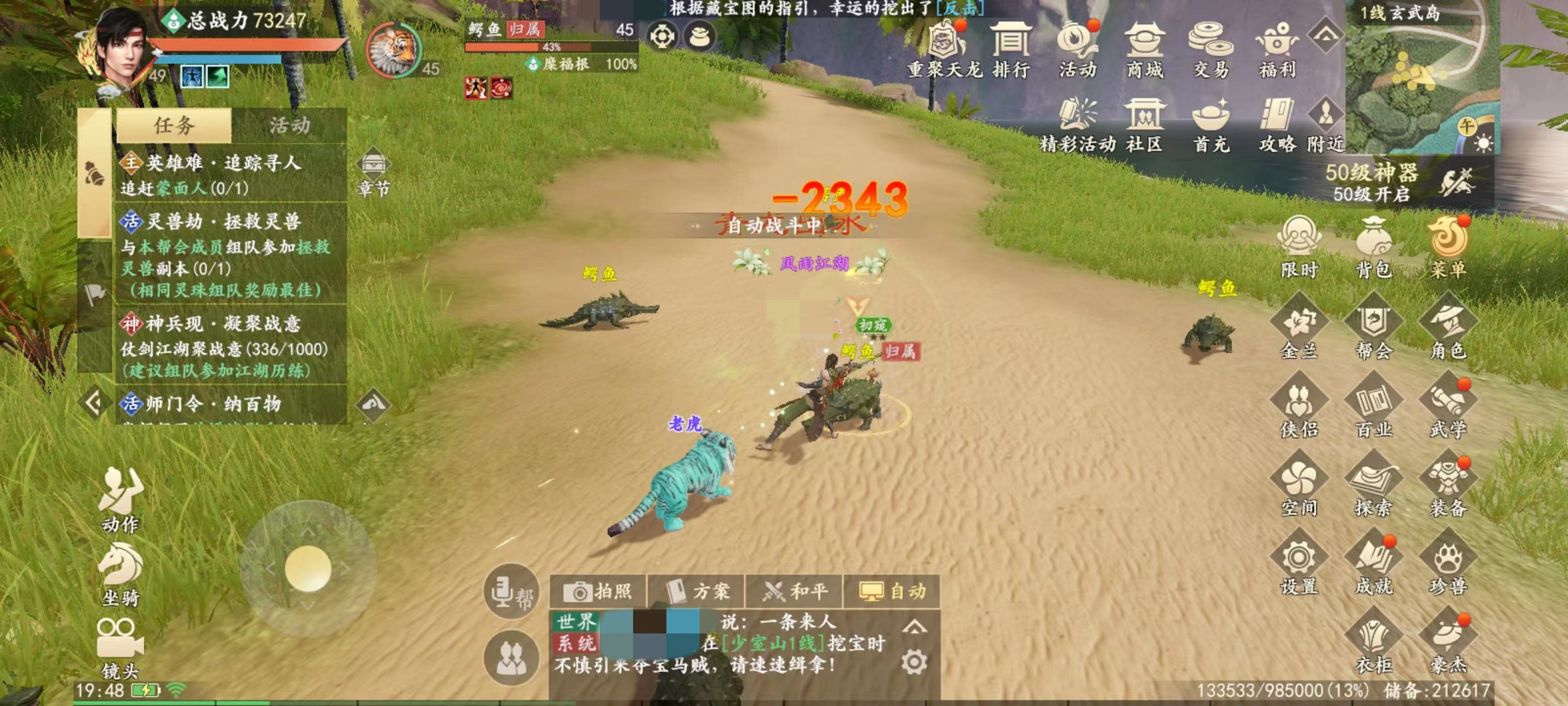 需要注意的是,在活动开启5分钟后,玄武岛入口处就会关闭无法进入,所以一定要提前前往等待,不然很容易就错过时间。这项活动因为难度较大,所以在奖励方面非常大方,包括大量金币,珍兽技能书,珍兽蛋,帮会红包和高级藏宝图等。高级藏宝图区别于低级图的是,在这里能够有更大几率获得珍兽技能书和根骨丹,更是有几率获得九黎妖虎元神,所以高级图是玩家争相获取的内容。另外帮会红包可以在自己帮会中发放,既可以提升人气,又能让帮会变得更活跃。