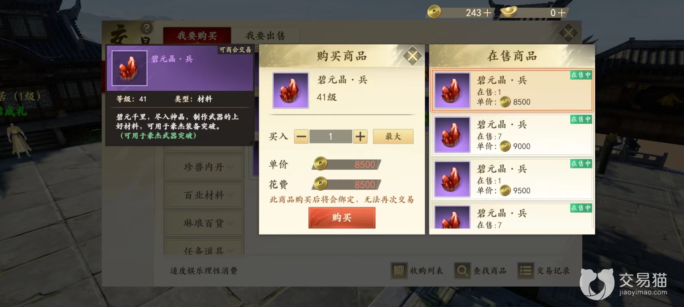 而碧元晶就分为五类,分别对应兵器,衣服,帽子等,在碧元晶后面会有相应后缀,例如兵、甲、冠、靴、佩,指的就是这五种不同装备类型。只有相关联起来的碧元晶才可以提升相应豪杰装备,例如碧元晶兵就只能用于豪杰武器突破。碧元晶甲就只能用于豪杰衣服突破等,相互之间不能混用。而在获取的时候,所有这些都有着共同获取渠道,目前可以在天宁寺每日副本和挑战副本中获得,也可以在清阳秘宝中得到,或者是商会直接购买。