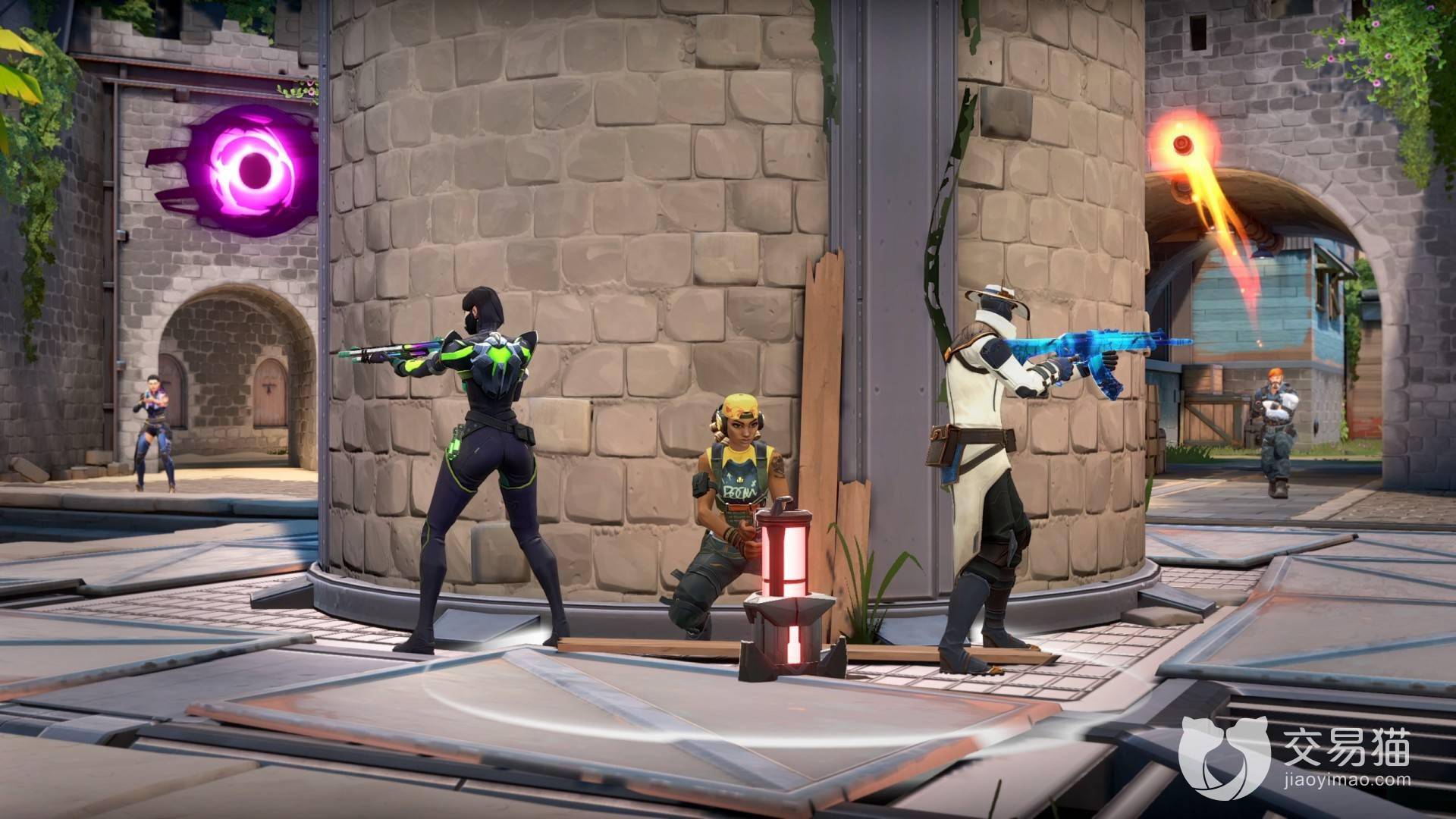 C技能-玉城:这个技能是通过装备屏障球的方式来上线,当需要这个技能的时候按下攻击键就能释放这个屏障球,这个球的效果是让墙体变得更加坚固,不容易被攻破,还能通过辅助键来让墙体旋转,给队友设立保护屏障。