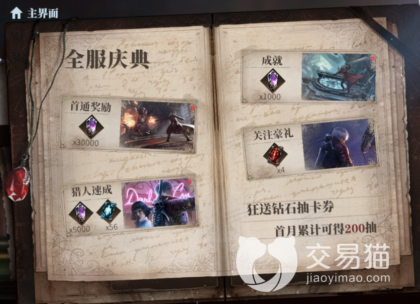 首次通关猎魔活动即可获得丰厚的30000+钻石奖励!利用这些进行抽卡和升级,为自己的恶魔猎人之路打下坚实的基础。