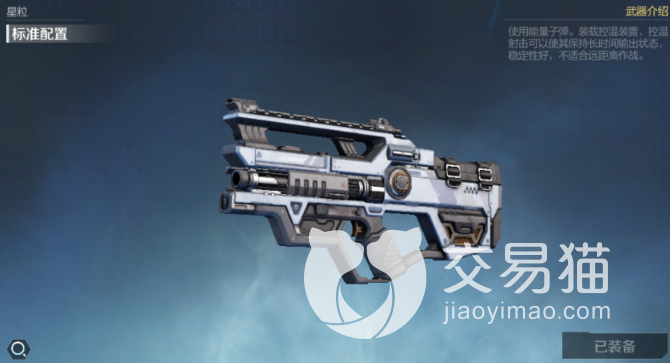 星粒,使用能量子弹装载控温装置的标准轻机枪组。其基础的射击速度较慢,但是如果装载控温装置在持续加热,控温设计下能保持更长时间的输出,且稳定性较好。不过相对应的,其距离衰减比较高,对于远距离作战方面不是特别推荐。