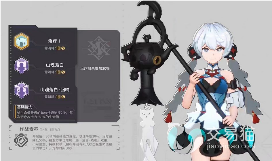 今天小编带来的第一个推荐角色就是山栀,山治作为行医者的角色,他没有任何的攻击力可言。是一个sr。他的普攻技能就是给己方一位血量值比较偏低的人进行治疗,增加其血条值。骑大招山魂落白。可以为队友添加一定的落白效果。这种持续性的回血技能可以帮助队友。抵挡三回的攻击。而且技能恢复时间较低。每次接收到攻击都会返回一点技能,这就是他的保命神器。