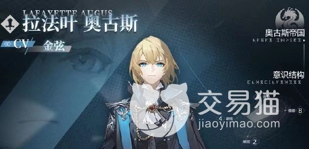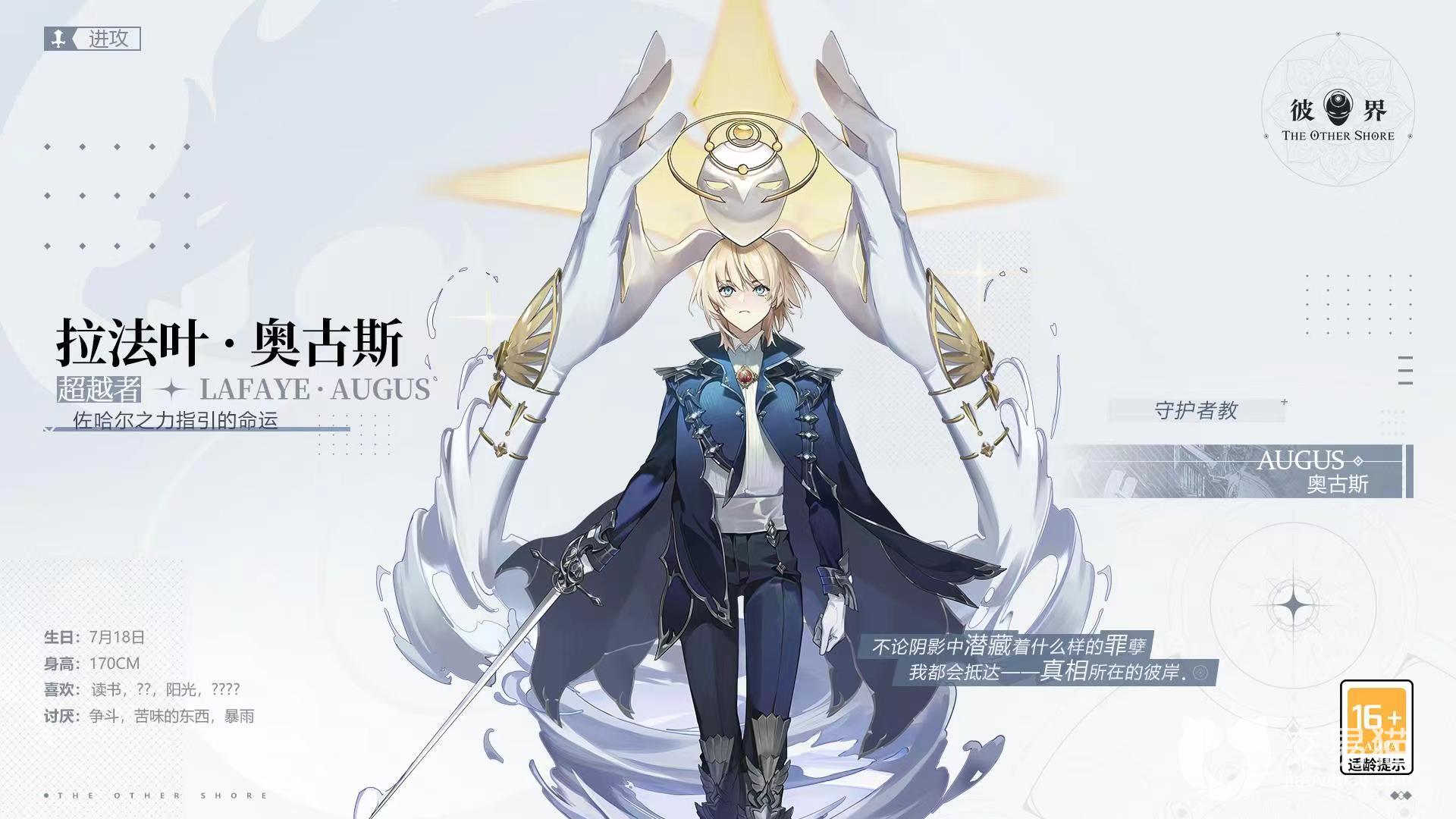 彼界游戏中的拉法叶奥古斯是不可侵犯的奥古斯帝国国王埃尔加儿子,同时他也是这个国家的储君。他是一个温婉少言的少年,但是因为父皇把他当成继承人对他事事严苛要求,所以又让他养成了果断的行事作风。