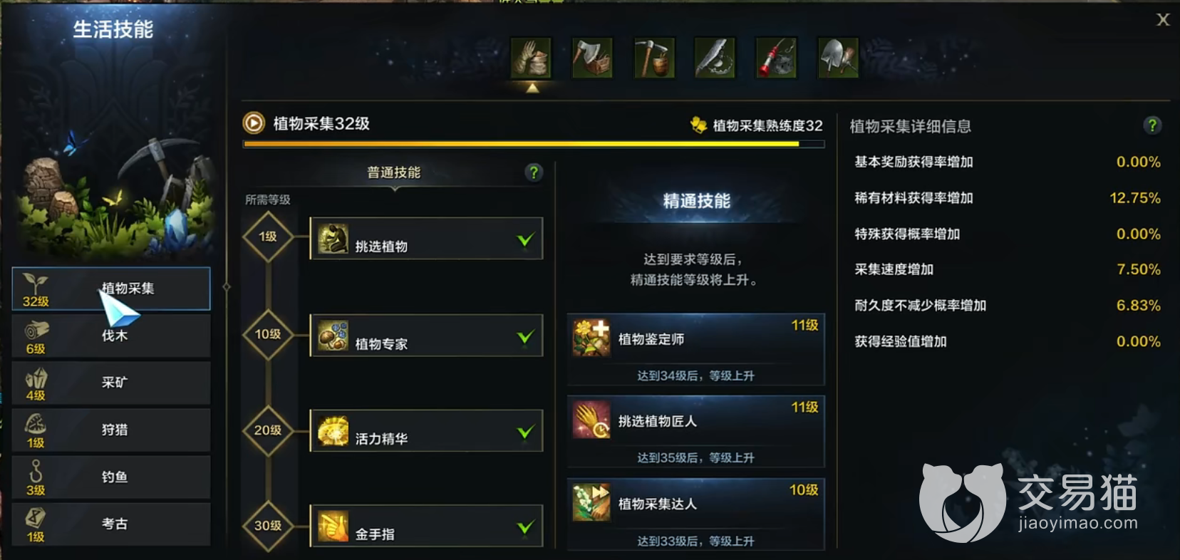 这些就是游戏里面生活技能的大概介绍了,在玩家还没满级之前可以不用碰,因为对玩家的帮助不大,但是在玩家满级之后,建议花一些时间来练一下,带来的收获绝对比一直打本来的强,并且有很多玩家不爱一直追求强度,可以边看风景边玩游戏也是不错的选择。