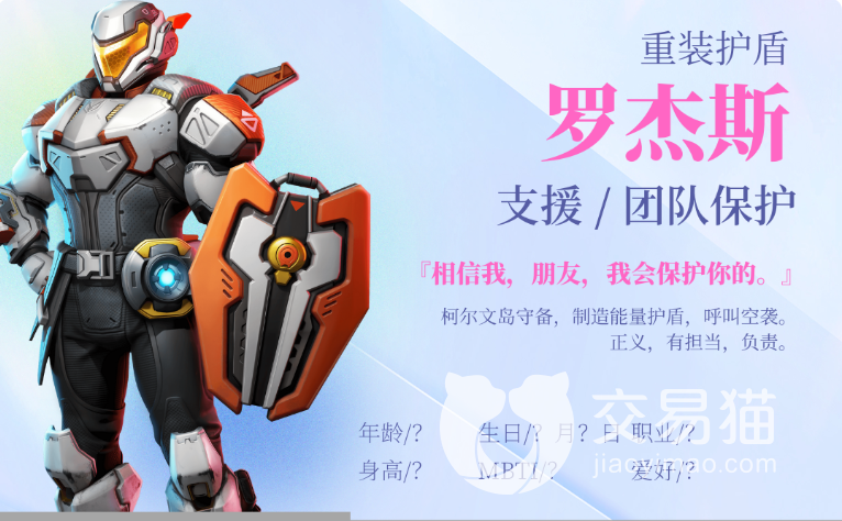罗杰斯在游戏当中被称为重装护盾,是一个让队友十分具有安全感的角色,他所处的位置也是支援位,主要是对团队的队友进行保护,他曾经是一名军人,后在小岛隐世而居,但是最终还是因为能抱事件卷入了这场纷争当中。