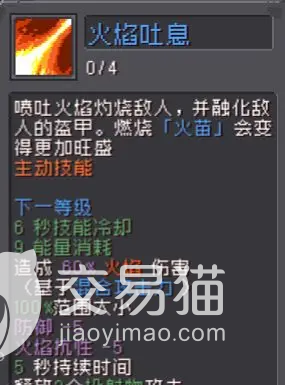 【火焰吐息】:火焰骑士会喷吐出火焰灼烧敌人毛病对敌人造成60%的火焰伤害,同时会融化敌人的盔甲,这里的意思是会减少敌人5点防御属性和5点对火焰伤害的抗性,会持续5秒钟,这个技能需要6秒冷却和9点能量。