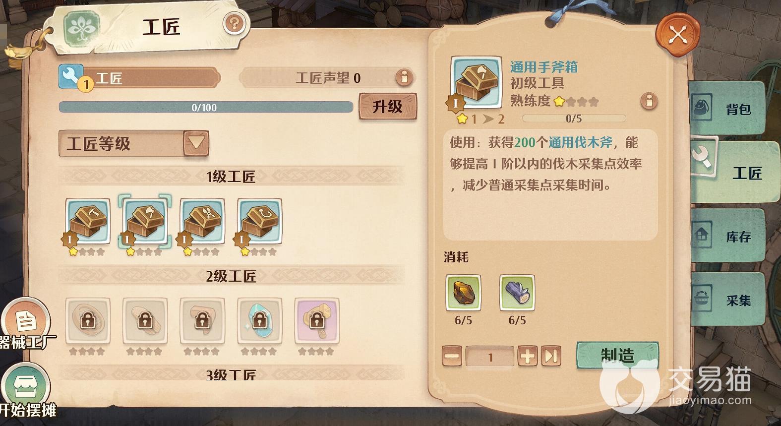以上就是关于森之国度工匠攻略介绍的分享了,工匠职业的玩法就是敲敲敲了,只要有材料,基本上什么都能制作出来,到时候把这些完成品出售获得游戏币就可以了。