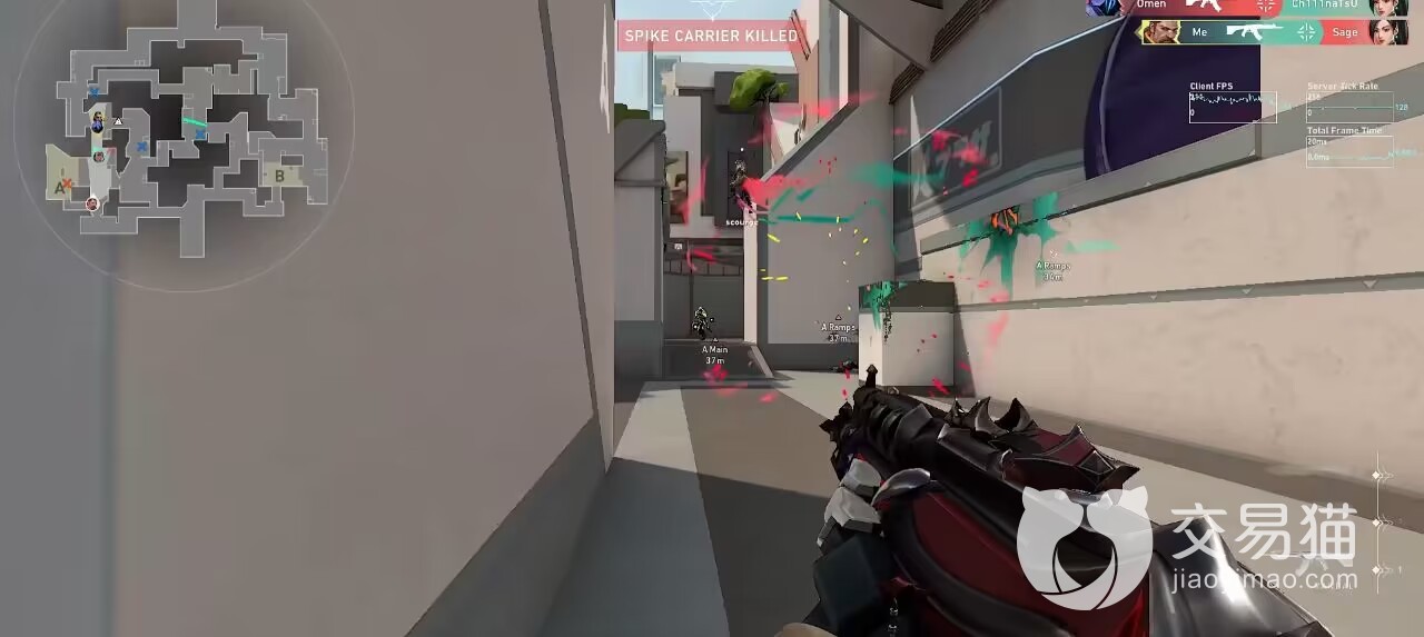 C技能朝指定障碍物当媒介释放之后引导爆炸,主要的作用就是清理死点,逼人出来,条件允许的话也可以拿来守包,由于其隔墙就可以释放的特性,二楼底下也是可以受到伤害波及的。实战的时候和队友沟通冲死角,提前让队友架好枪,逼人出来之后打一波配合。