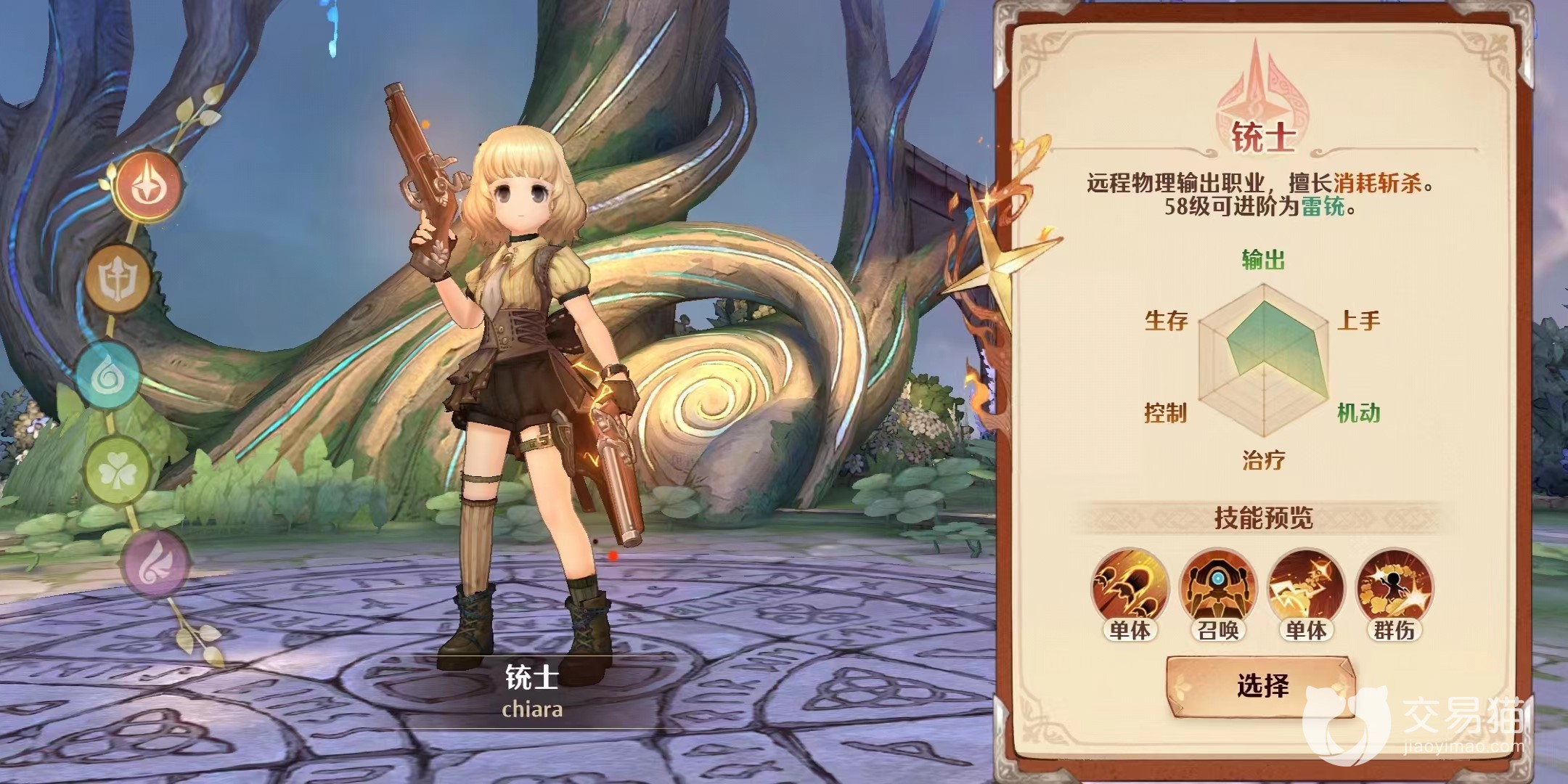 4、铳士。这个职业的特点是需要灵活的走位,灵活性很好还有不错的输出,所有技能都是用来输出的,同时他还能在作战的时候召唤一个机器小怪来辅助战斗,比别的职业再多一个宠物。