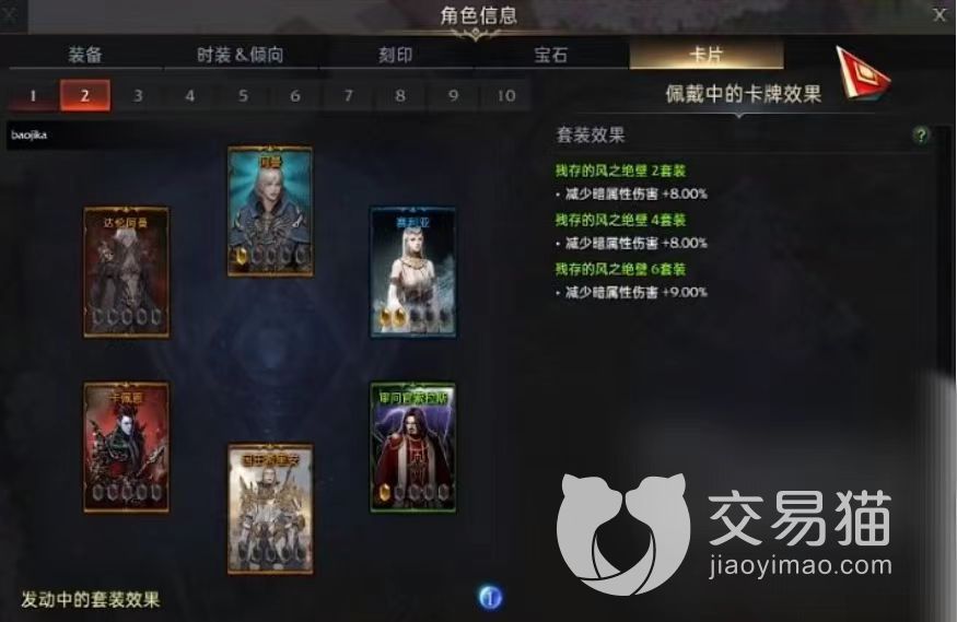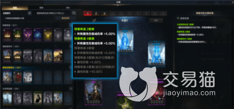 在游戏中我们可以将几张卡牌组成一组,游戏中叫做“镶嵌”,组成套装,产生套装效果,为我们的角色提供增益效果,主要套装有特里希温套装、野外首领、愿能活着再见&沉默的巨人之森、遗风峭壁、救赎世界的光芒等,它们拥有着增强角色输出、防御力、生命值等能力。在“图鉴”界面,我们如果收集到了一定进度,就会给予我们奖励。还有一个”成长“界面,我们可以在这里对卡牌进行升级觉醒。