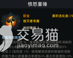 愤怒大锤的职业特征是在使用的时候会依据消耗的重力核心数量增加暴击率,分别是5%和15%。所以小伙伴们在使用技能的时候,基本上保持三个重力核心状态就可以了,相当于一直增加了15%的暴击和45%的暴击。战斗特性推荐小伙伴们使用会心和专长。项链选择专长和会心,其他的部位选择会心就行。会心对愤怒大锤的影响挺大的,因为刻印就自带了45%的暴击伤害。