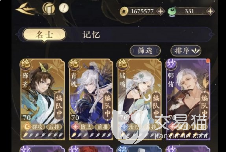 玩家们首先要明白角色的定位、能力、输出或者辅助手段,这样才能更好地抉择怎么搭配阵容与培养顺序。比如陈齐、拓跋煜这种的就是输出位置,在队伍中充当打伤害的作用;而孙怀瑾、陆鸣这样的就是辅助,为全队进行增益;而顾昭这样的就是前排,负责抗伤。