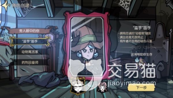 性别选择好之后就可以选择角色了,在该游戏中有三个不一样的角色,分别是笛手,预言家和品鉴师,他们各自效果不同,笛手可以召唤老鼠来收集资源,预言家可以解锁动物预言集将怪物的仇恨清空,品鉴师可以解锁药剂,给自己恢复理智或者生命,而且还有夜视效果的药剂哦。