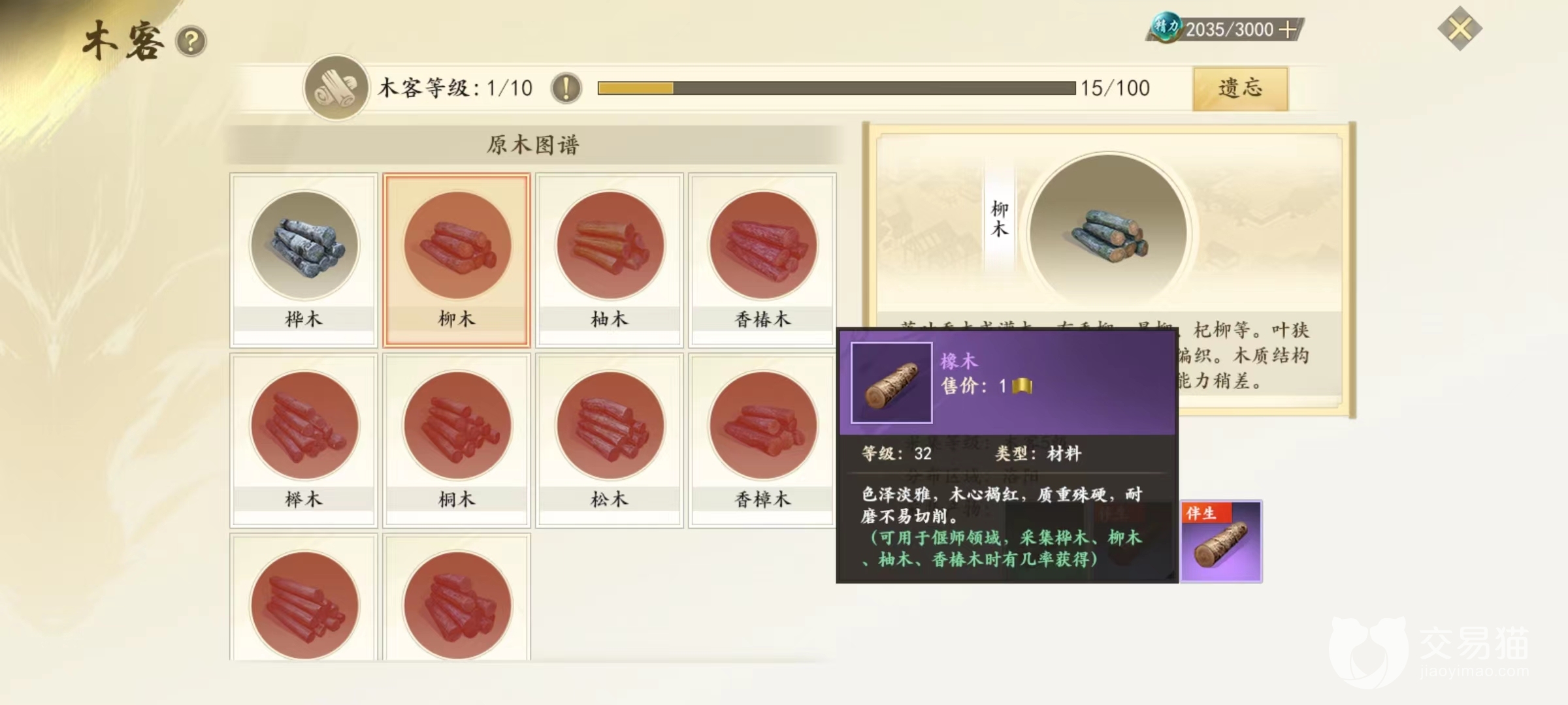 刚刚学习之后只有一级,只能在大理采集一些最基础的桦木,这也是目前最低级材料,但如果出现伴生水曲柳或是橡木,那么收益将会提升很多。当然前期主要是为了冲级,每次采集都能增长熟练度,熟练度达到满值之后就可以升到下一等级,前十级为学徒阶段,后面可以达到良工、巧匠等不同专业级别。只要熟练度够就能自动提升,但是达到当前阶段上限时候需要完成一些进阶任务。