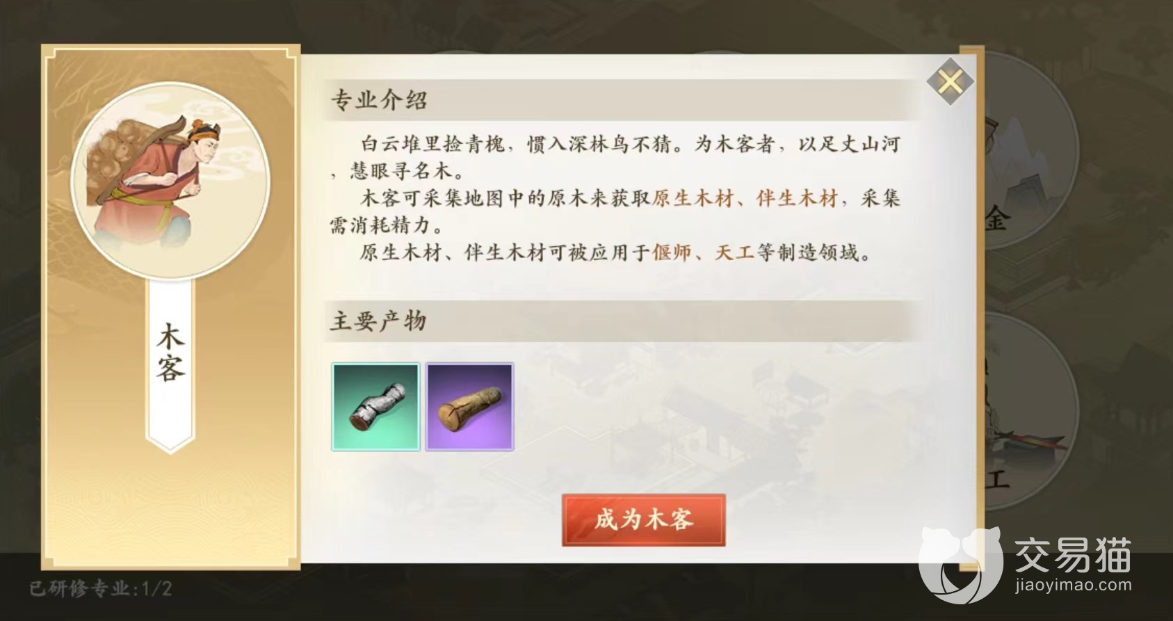 木客就是采集原木来获得原生木材,在过程中还将出现一些高品质伴生木材,这些伴生木材产量稀少,但都是制造职业中不可或缺的材料。原生木材虽然数量多,但是制作过程中用量很大,所以现在木客是很多比较稀缺的副职业。学习完毕之后,就能看到有当前所有可以采集的原木图谱,这些图谱将按照地图分类,大家需要根据自己当前职业等级,去合理选择采集类型。
