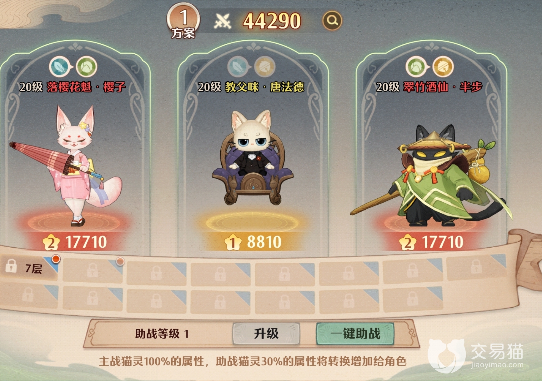 最后玩家在获取猫灵之后,获得的重复的猫灵会分解为碎片,帮助玩家给猫灵进行品质的提升,猫灵都可以提升三个等级。同时通过喂养猫灵进行突破,也可以激活不同猫灵的羁绊。