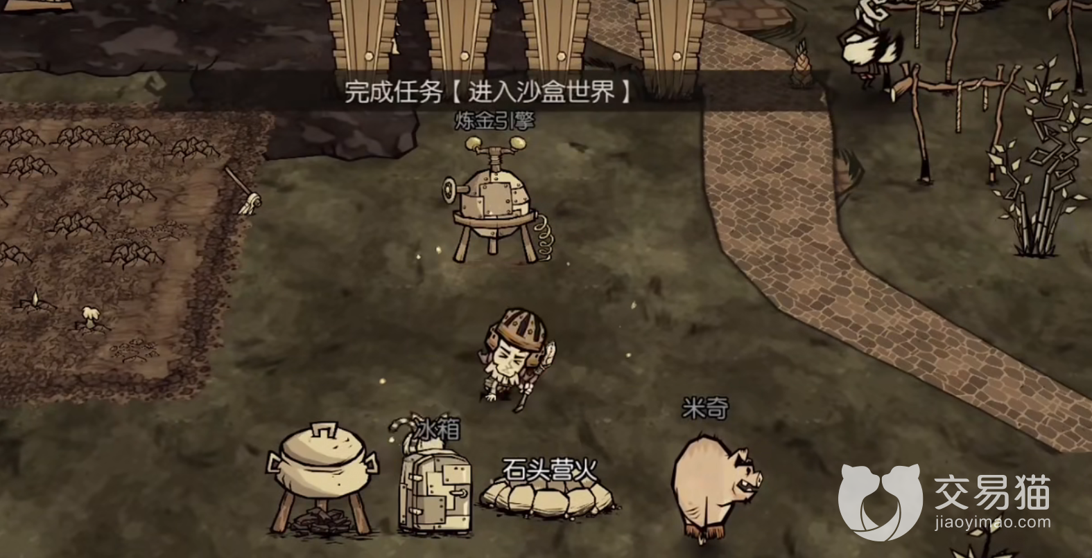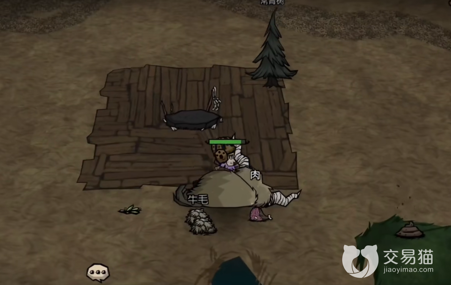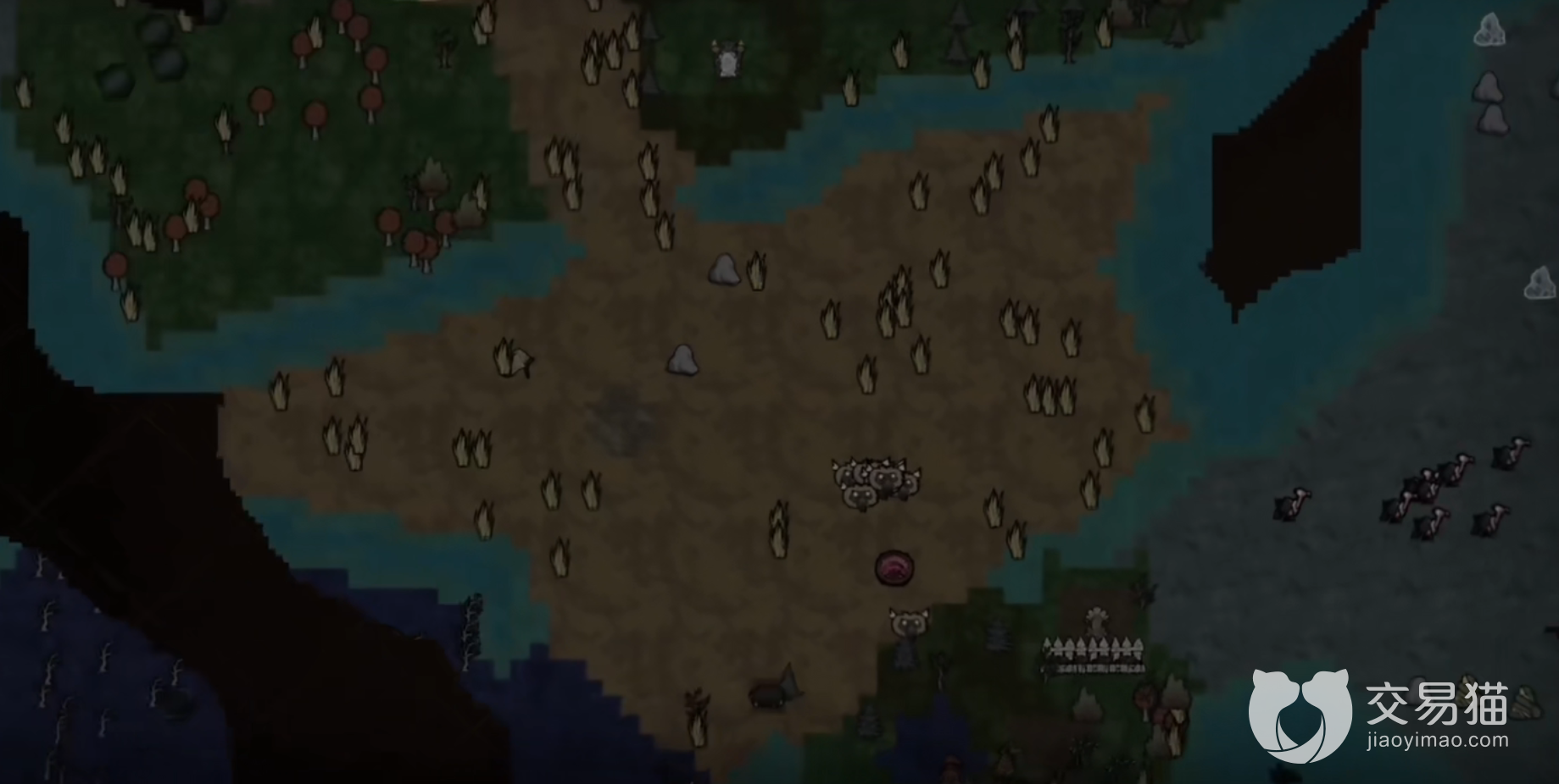 首先出生点随机的玩家需要选择的最佳地点就是有资源的地方,当然最好的地点还是有猪人等中立生物的地方,前期没有武器的时候,猪人的战斗能力还是非常强力的,并且只要一个火堆基本上没有多少生存压力,还能利用蜘蛛和猪的敌对关系白嫖猪肉和蛛丝,可以说将寄生式生活发挥到了极致。