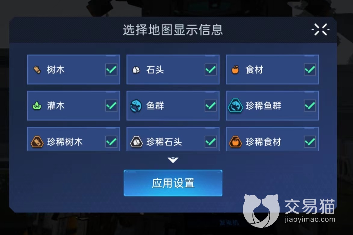 所有资源分布位置在小地图中都有体现,在地图中可以看到有很多不同图标,其中绿色植物图标代表的就是灌木丛所在位置。如果有需要可以直接前往,这样就不至于到处漫无目的寻找。如果想要更加突出,就点击小地图,从中选择显示信息,将其他不需要的全部关闭,只保留灌木,就能够更加清楚地展现出来,方便寻找。