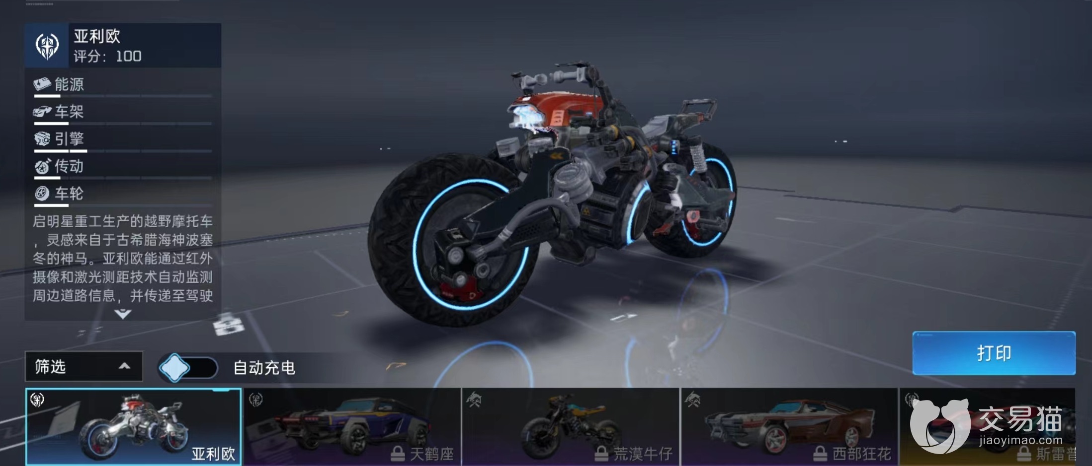 要想得到摩托车非常简单,跟随主线就会直接赠送一辆蓝色品质亚利欧,但是这一辆车评分较低,也没有其他特点,只能用于普通代步。如果想要更加炫酷一些就要自己去获得,通过载具筛选,我们可以看到目前摩托车种类是最多的,一共有五辆,除了直接赠送的之外,还有四辆需要大家去获得。