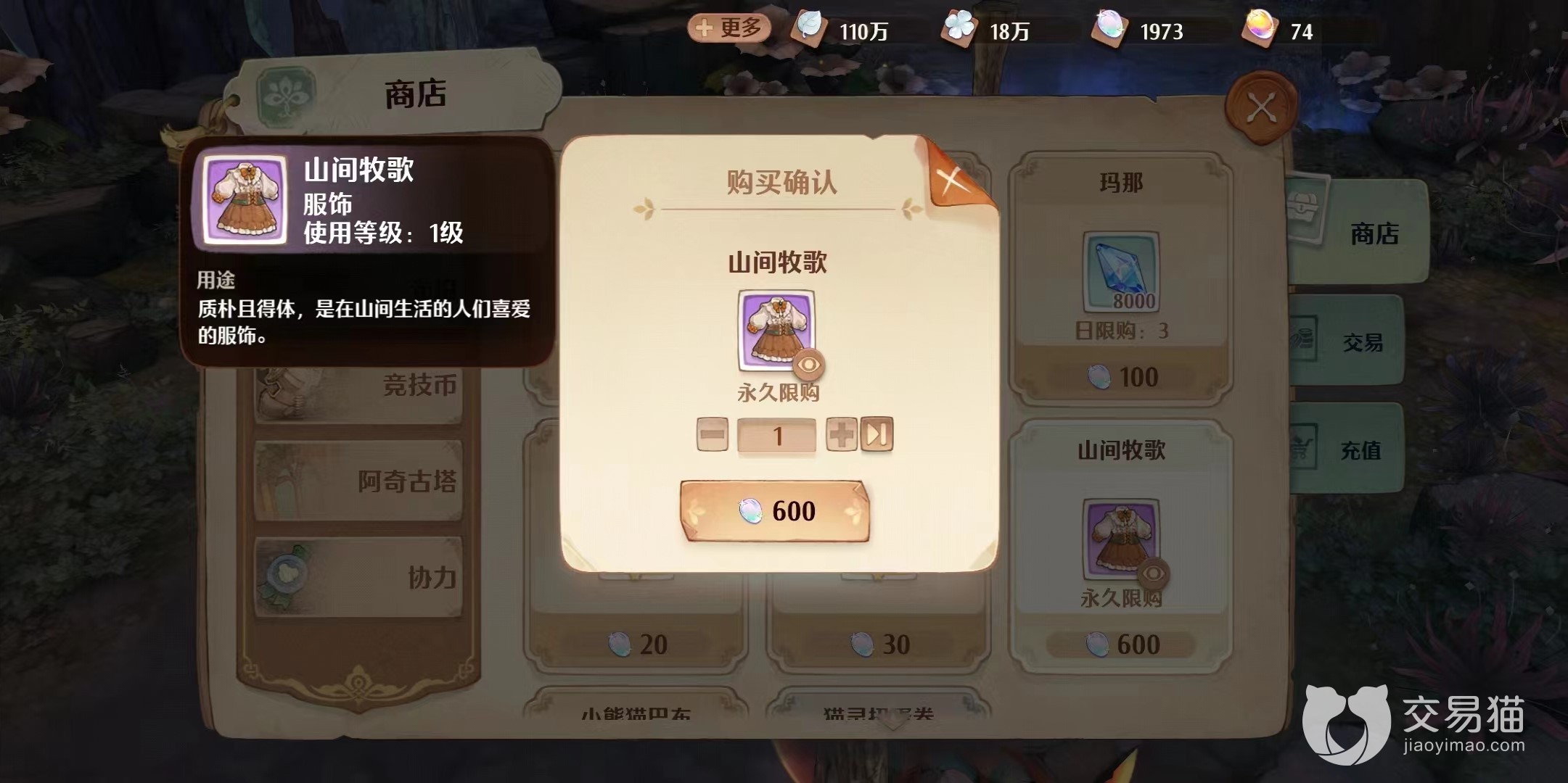 2、商店。在商店中也有提供时装的项目。在商店中获得的时装是永久性的,有足够的光珀就能兑换了。